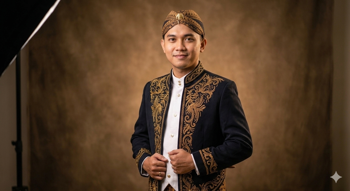 Evening formal with a Javanese soul. We're in the tropics at dusk — think silk, batik, and linen. Bare feet are welcome after dinner.